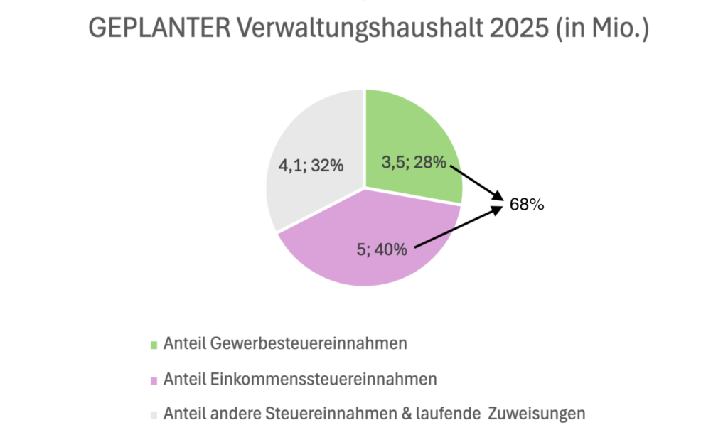 Die Zahlen* sprechen für sich: 68% unseres Verwaltungshaushalts kommen aus Einkommens- und Gewerbesteuer. Die Realität ist: Unsere Gemeinde hat laufende Pflichtkosten – Straßen, Schulen, Kindergärten, Infrastruktur. Diese Kosten steigen jedes Jahr. Otterfing ist in den letzten Jahren nicht gewachsen*, wenn das so bleibt und keine neuen Einnahmen durch Zuzug und Erweiterung des Gewerbegebietes kommen, werden wir alle mehr zahlen müssen – oder auf vieles verzichten.